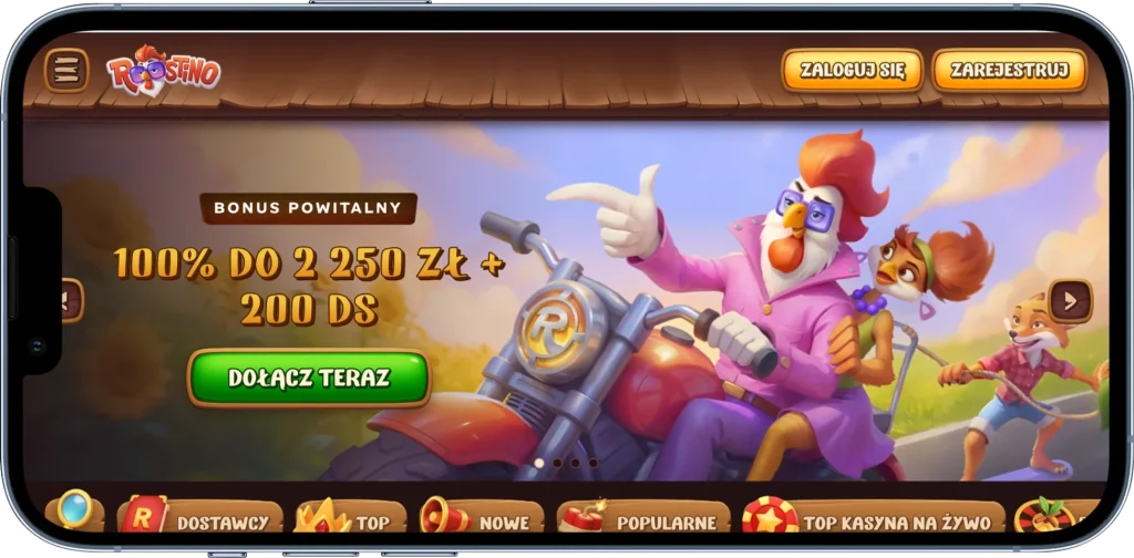 Roostino wyróżnia się połączeniem kasyna z rozbudowanym sportsbookiem obejmującym ponad 50 000 wydarzeń sportowych rocznie – rzadko spotykana skala w kasynach online dostępnych dla graczy z Polski. Biblioteka gier przekracza 10 000 tytułów, a bonus powitalny to 100% do 500 EUR + 200 darmowych spinów przy minimalnym depozycie 20 EUR.