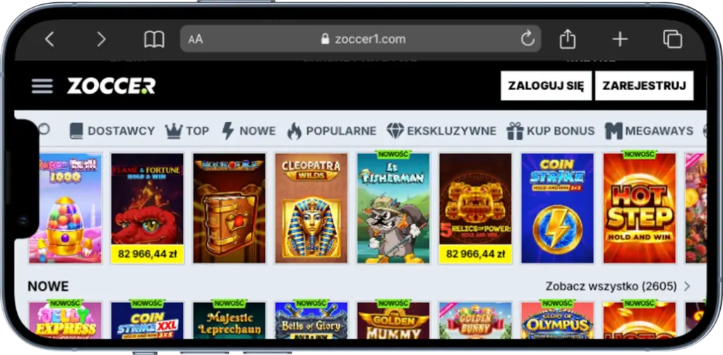 Zoccer oferuje jeden z największych katalogów gier wśród nowych kasyn online – ponad 9 000 tytułów od takich dostawców jak Pragmatic Play, Yggdrasil, Microgaming i Betsoft. Platforma łączy kasyno z pełnoprawnym sportsbookiem, dzięki czemu możesz grać w automaty i obstawiać sport w jednym miejscu.
