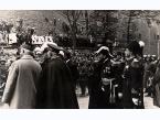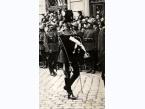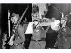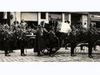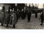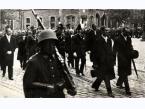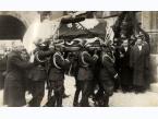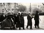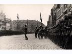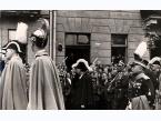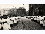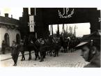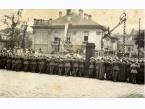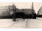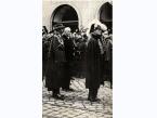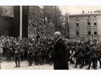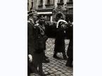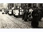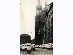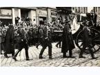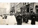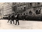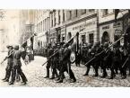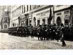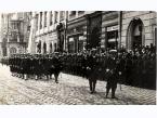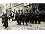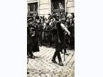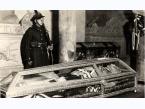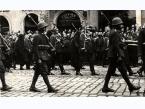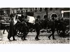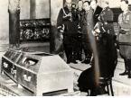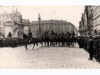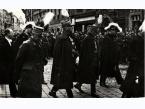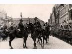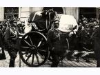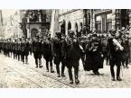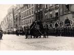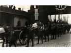 Za trumną skupiły się chmury. Było coś symbolicznego i przejmującego w tym, że na lewo od trumny niebo było jasne, a nad trumną i na prawo od niej, aż do linii horyzontu, chmury były skupione w jedną sinoczarną kopułę, chmury wielkiej burzy. Od czasu do czasu przelatywały małe błyskawice. I oto przed tą trumną, a w kierunku tych czarnych chmur i błyskawic maszerowało wojsko: poczty sztandarowe wszystkich pułków armii, której On dał życie, którą stworzył.