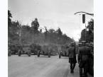 W Alejach Ujazdowskich odbywała się defilada wojsk niemieckich. Stamtąd kolumny wrogiej armii skręcały w Aleje Jerozolimskie i Marszałkowską w kierunku Saskiego Ogrodu. Staliśmy z żoną na rogu Świętokrzyskiej pod kolumnami PKO. Nad wejściem do gmachu widniał polski orzeł i jakaś sentencja prezydenta Mościckiego.