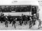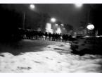 Błyskając niebieskimi światłami, nadjechała od strony Bielan, a więc pod prąd, kolumna samochodów ciężarowych wypełnionych milicjantami i zomowcami i zatrzymała się przed naszym akademikiem. Z ciężarówki wyszedł oficer i jeszcze jeden lub dwóch funkcjonariuszy i stanęli na środku jezdni. Przez dłuższą chwilę patrzyli na nas, a my na nich. Widocznie nie bardzo wiedzieli, co począć. Przypuszczalnie mieli ochotę spacyfikować ten najbardziej kłopotliwy akademik, ale nie mieli do tego pretekstu, bo było cicho jak makiem zasiał. Wreszcie bez słowa wsiedli do samochodu i kolumna odjechała, a nam ciężar spadł z serca. Studenci znowu się ożywili, jednak było już znacznie spokojniej.