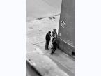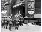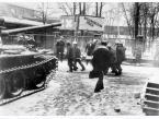 Nie bierze pokusa, żeby uciekać — nie ma gdzie. Chwytamy się mocno pod ręce. Widać twarze pod przyłbicami hełmów. Prowadzący oficer wali spod pachy serię tuż ponad naszymi głowami, aż tynk się posypał i smuga odprysków wykwitła na murze. To już nie ślepaki. To, okazuje się, sygnał do szturmu na nas.