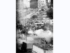 O 18.00 dotarłem już tylko na róg Krakowskiego i Koziej. Tłum właśnie szturmował kino „Kultura”, śpiewając Jeszcze Polska nie zginęła. Mnóstwo gapiów. Wśród huku granatów i nieopisanej wrzawy wycofałem się przez Kozią. O 19.00 nie mogłem się już przedostać na Krakowskie. Olbrzymi tłum zalegał część Miodowej, całą Kapitulną i całe Podwale. W zasadzie byli to gapie, wrogo usposobieni do milicji, ale jeszcze […] nie dość „wkurzeni”, jakby oczekujący jakiegoś wydarzenia, które by ich wprowadziło do akcji. Z odgłosów, które dochodziły od placu Zamkowego i z relacji gapiów wywnioskowałem, że […] toczyła się formalna bitwa ludności z milicją. W akcji były samochody pancerne z działkami wodnymi i wyrzutnie gazów łzawiących. Warszawiacy walczyli na kije, kamienie, łańcuchy rowerowe, kawały pasów transmisyjnych (z mutrą na końcu), butelki. […] Na Krakowskim pobojowisko: resztki barykad z ławek ogrodowych, kamienie, żerdzie powyrywane z ławek — połamane! — znać, że machano dosyć raźnie. W kinie „Kultura” i w dawnej Resursie wybite szyby. Ale poza tym sklepy nietknięte.