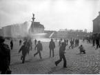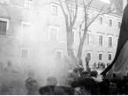 Są! Armatka, szpalery zomowców. Od razu w hełmach, z tarczami. Szczekaczka nawołuje, żeby przechodzić na Planty, niektórzy dają się na to nabrać. Naiwni! Salwa z działka wodnego już zmiata pierwszy szereg, idą w ruch pały… Nie ma nawet czasu, żeby pomyśleć. Wyrywamy do tyłu, ktoś schyla się po pierwszy kamień… Od strony Teatru Słowackiego ściągają rozbite grupki naszych. Podobno bardzo bili, ktoś opowiada tragi-komiczną scenę: zomowiec dogania dziewczynę, pałuje, dziewczyna pada, wtedy zomowiec pomaga jej wstać — i zostaje przez nią spoliczkowany.
