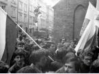 W całej Polsce odbyły się dziś manifestacje, żądające „Polski katolickiej, a nie komunistycznej”, rozpędzone przez milicję. W katedrze warszawskiej uroczyste nabożeństwo. Kilkutysięczny tłum po wyjściu chciał udać się do Grobu Nieznanego Żołnierza, lecz ZOMO udaremniło pochód. Są aresztowani. Oto kłamliwe deklaracje reżymu o „wolności”…