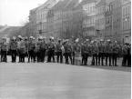 Dowodził pułkownik. Przedstawiłem się i wytłumaczyłem mu, że nie jesteśmy w stanie podporządkować się wezwaniu do rozejścia, bo mamy z przodu milicję, z tyłu milicję, a po bokach bloki. W końcu coś razem wymyśliliśmy i oni pożyczyli mi głośnik, żebym mógł to ludziom powiedzieć. Cel demonstracji został osiągnięty, nie było powodu dawać im jeszcze tej satysfakcji, że nas stłuką za frajer. Ludzie powoli znikali z ulicy, kiedy stanął przy mnie starszy sierżant: „Pan idzie ze mną, dowódca coś jeszcze panu powie”. Domyślałem się, co ma do powiedzenia, ale nie chciałem przecież awantury, więc spokojnie, na luzie, poszedłem dać się zamknąć.
